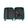 Uvnitř kufru naleznete tradiční uspořádání – jedna část se uzavírá látkovou stěnou se zipem a síťovou kapsičkou a druhá část je zabezpečená popruhy. Pohodlné teleskopické madlo a čtyři dvojité otočné kolečka pro snadnou manipulaci.