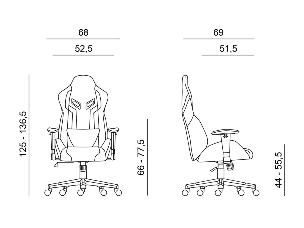 Součástí výbavy jsou také fixní područky s plastovou dotykovou plochou. Opěrák je obohacen výškově stavitelnou bederní opěrkou. Houpací mechanismus umožňuje aretaci v základní pozici. Herní židle také umožňuje samostatný sklon opěradla.