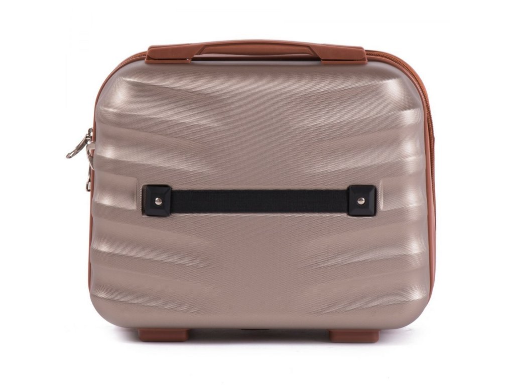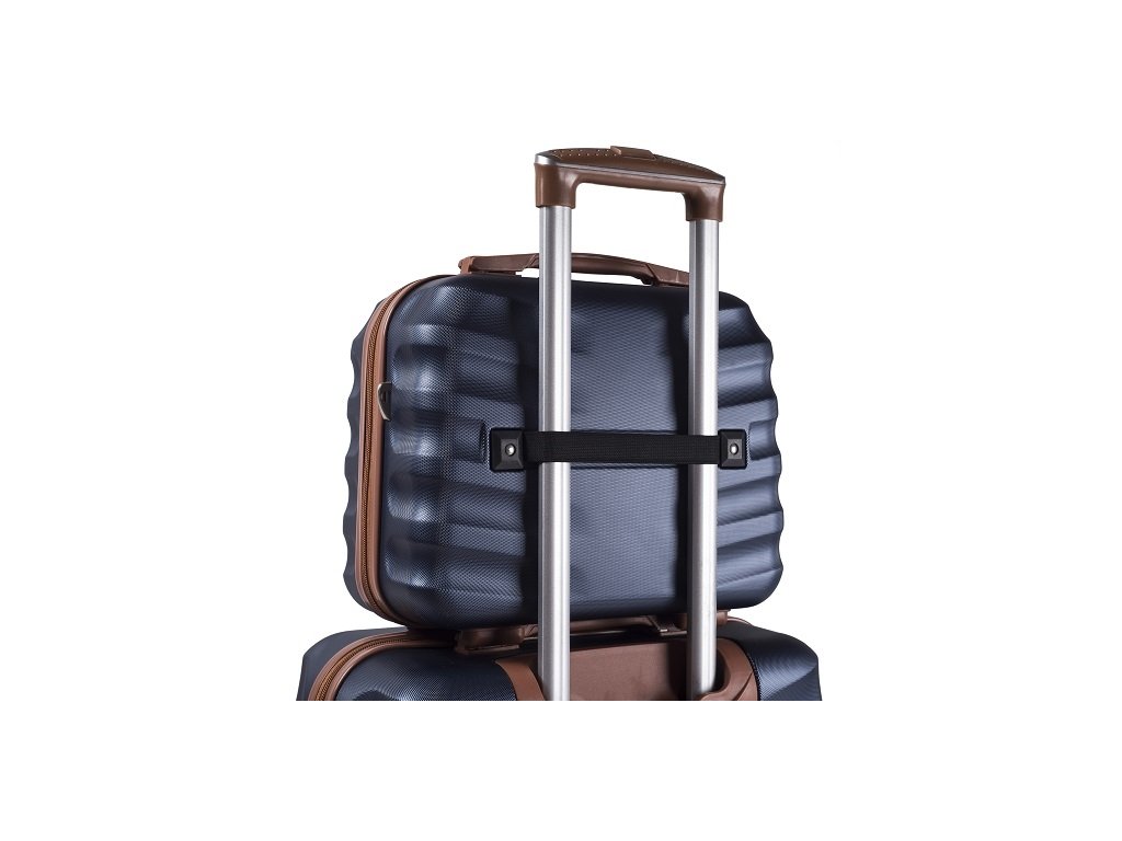 Lze připevnit na výsuvné madlo kufru pomocí pružného pásku na zadní straně.